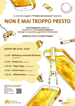 Das Projekt „Konsum und seine Grenzen“, gegründet im Jahr 2023, hat das Ziel, Fachkräfte, Eltern und die Bevölkerung für das Thema Konsum zu sensibilisieren – für seine Bedeutung, seine Bereiche (z. B. Alkohol, Drogen, soziale Medien, physische Bereiche, Nachrichten...) sowie für die notwendigen Kompetenzen eines bewussten Umgangs. Im Mittelpunkt stehen auch die Modelle und Konsumstile, die die Erwachsenen Kindern, Mädchen und Jungen vorleben.