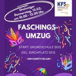 Am Donnerstag, den 12. Februar 2026, findet in Kastelruth der Faschingsumzug statt. Der Start ist um 15:00 Uhr bei der Mittelschule.
