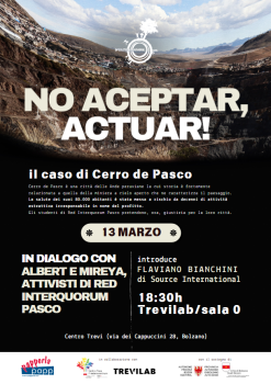 È già stato a Bolzano il regista Stefano Sbrulli con il suo documentario “Donde los niños no sueñan”, che racconta proprio della realtà di Cerro de Pasco, uno dei luoghi più inquinati del pianeta. E continuiamo con gli attivisti di Red Interquorum Pasco (associazione di Cerro de Pasco).