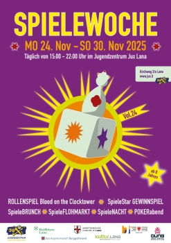 Vom 24. bis 30. November 2025 verwandelt sich das Jugendzentrum Jux Lana wieder in ein Paradies für alle Brettspielbegeisterten!