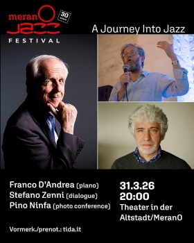 Per il suo 85° compleanno, festeggiamo insieme a MeranOJazz il grande pianista meranese Franco D'Andrea. Il suo concerto solista, accompagnato da un dialogo con il musicologo Stefano Zenni, funge da preludio alle celebrazioni per il 30° anniversario dalla fondazione del festival MeranO Jazz, divenuto ormai un punto di riferimento della cultura jazzistica regionale.