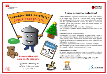 Gli oggetti andranno consegnati presso la sala polifunzionale del centro civico Oltrisarco-Aslago in piazza Nikoletti venerdì 12 dicembre a partire dalle ore 9:30.