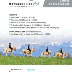Entro le ore 18.00 del giorno precedente online oppure presso l'ufficio turistico di Parcines o Rablà