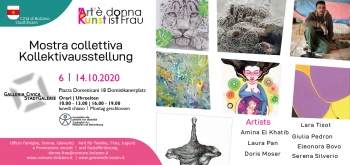 Rinviata la scorsa primavera causa Covid, la Galleria Civica di piazza Domenicani ospita ora la mostra collettiva a conclusione dell'edizione 2019-2020 di ART'è donna, progetto dell'Ufficio Donna del Comune di Bolzano per sostenere e promuovere giovani talenti al femminile che si esprimono attraverso diverse discipline artistiche quali la pittura, la fotografia e la grafica. Il tutto in attesa del lancio della 9a edizione, cui quest'anno potranno partecipare 7 giovani donne under 35 residenti in provincia o domiciliate a Bolzano che sino a giugno 2021 avranno a disposizione per un mese intero, 6 grandi vetrine in Passaggio Walther per allestire la propria mostra personale e anche una vetrinetta piccola per tutta la durata del progetto.