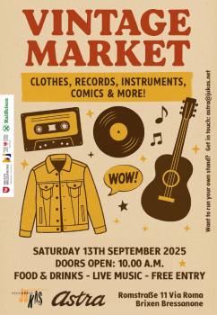 Bei unserem ersten Vintage Market erwarten dich Secondhand-Vibes, DIY-Schätze und Musik im Ohr. Komm vorbei!Dich erwarten: coole Klamotten, handgemachter Schmuck, Comics, Musikinstrumente, Band-Shirts, Schallplatten und jede Menge Retro-Vibes.