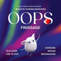 • Seit 10 Jahren verwandelt die Licht- und Musikshow Brixen zur Weihnachtszeit in ein magisches Erlebnis. Zur Jubiläumsfeier erwartet euch 2025 etwas ganz Besonderes: Die französischen Lichtkünstler Spectaculaires haben gemeinsam mit der Musiklegende Giorgio Moroder ein völlig neues immersives Spektakel geschaffen. Der Oscar-, Grammy- und Golden Globe-Gewinner hat eigens für "OOPS" einen originellen Soundtrack komponiert, der die 20-minütige Show zu einem unvergesslichen Erlebnis macht. Begleitet das kleine Wesen Oops auf seiner außergewöhnlichen Reise und unterstützt gleichzeitig UNICEF - denn mit jedem Ticket fließt 1€ direkt an das Wash Zambia-Programm, um das Leben von Kindern in Afrika zu verbessern. Eine Show, die alle Altersgruppen begeistert und zum Träumen einlädt! Die Geschichte Ein Abenteuer zwischen Lichtern, Musik und Träumen Es ist Heiligabend, und wir befinden uns auf einer festlich belebten Straße, umgeben von Lachen und Farben, wo sich ein kleines Wesen – Oops – in einer Menge von Erwachsenen verirrt. Unsichtbar für die Augen der Erwachsenen, klammert es sich an den Faden seines Luftballons, dem einzigen Bezugspunkt in einer zu großen Welt. Doch als es ihn verliert, beginnt eine außergewöhnliche Reise: eine Verfolgungsjagd zwischen Traum und Wirklichkeit, die es durch imaginäre Welten, unmögliche Architekturen und atemberaubende Szenarien führt. Zwischen funkelnden Geschenkfabriken, verzauberten Wäldern und geheimnisvollen Schlössern jagt Oops seinem roten Luftballon hinterher, einem Symbol für Sehnsucht, Wachstum und Freiheit. Jeder Ort ist eine Entdeckung, ein Abenteuer, das die Fantasie herausfordert und das Staunen weckt. Diese visuelle Geschichte wird durch die Magie der französischen Lichtkünstler Spectaculaires - Allumeurs d'Images zum Leben erweckt. Die Meister des monumentalen Videomappings, die mit ihren Kreationen Plätze und Gebäude in traumhafte Welten verwandeln und Licht und Farbe atmen. Begleitet wird die Reise von einem originellen und überwältigenden Soundtrack, der von Giorgio Moroder, einer lebenden Legende der elektronischen Musik, Oscar-, Grammy- und Golden Globe-Gewinner, komponiert wurde. Eine Show für alle Altersgruppen, in der jeder Zuschauer ein Stück seines inneren Oops wiederentdecken kann. Ein immersives Erlebnis, das begeistert, unterhält, überrascht und – warum nicht – zum Träumen anregt. Darüber hinaus wird für jedes verkaufte Ticket 1 € (und 0,50 € für Kinderkarten) an UNICEF Wash Zambia-Programm gespendet, um das Leben von Millionen von Kindern in Afrika zu verbessern. Die Initiative ist Teil der Kulturolympiade Mailand Cortina 2026 - Barrierefreier Zugang - Keine Hunde erlaubt!