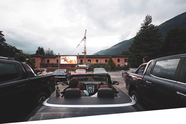 Schlanders Marketing, BASIS Vinschgau/Venosta und Kognitiv organisieren in den ersten Sommertagen auf dem Exerzierfeld der ehemaligen Drusus-Kaserne von Schlanders das faszinierende und einmalige Drive-In Kinoerlebnis.