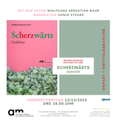 • Buchvorstellung und Lesung mit dem Autor Wolfgang Sebastian Baur Moderation: Sonja Steger Eintritt frei