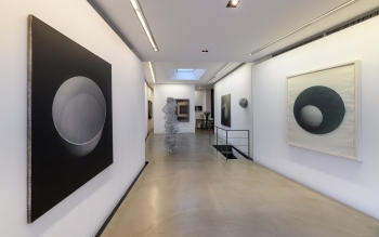 Con le opere che rappresentano rispettivamente un grande portale ed un interno, la tela si trasforma in una camera di echi. Al movimento del colore, ottenuto grazie a un singolare impiego del pointillisme, corrisponde una sorta di declinazione del concetto di ombra.