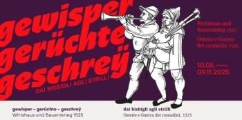 Nel 1525, la guerra dei contadini sconvolse la Germania, la Svizzera e il Tirolo. La mostra dà voce e volto a quel periodo turbolento ma ricco di fascino mettendo in primo piano non il campo di battaglia bensì l’osteria in quanto crocevia di classi sociali e crogiolo di chiacchiere e opinioni.