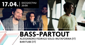 “From the Deep” - ovunque si sentono le vibrazioni profonde della terra. Il basso è alla base di sinfonie e orchestre, non solo di gruppi jazz classici. Anche se oggi lo strumento è spesso scomparso dai gruppi musicali, il suo suono rimane presente. Bottesini aveva già spinto il contrabbasso ai suoi limiti nella musica classica, e musicisti come Renaud Garcia Fons stanno continuando in questa direzione. Ma il contrabbasso non si può limitare a questi sviluppi creativi. In questo concerto, con queste due formazioni diventa particolarmente chiaro. Alessandro Federigo esplora nuovi mondi sonori con i suoi strumenti solo digitali e si lascia sorprendere e ispirare da risultati inaspettati: Mutaforma. Baritube è completamente diverso: Helga Plankensteiner, sassofonista baritono di grande esperienza, sceglie la tuba (Glauco Benedetti) come accompagnamento basso. Insieme ai suoni di Daniele Patton alle percussioni, si immergono in spazi sonori profondi ed esplorano ogni sfumatura... partout!