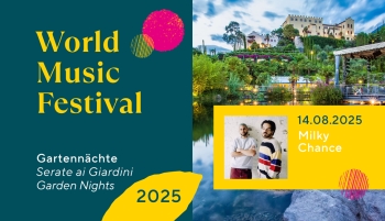 Ingresso: dalle ore 18.00 con possibilità di visitare i Giardini di Castel Trauttmansdorff. I concerti si svolgono all’aperto e in qualsiasi condizione atmosferica, i posti a sedere del pubblico non sono coperti. Non è garantito il posto a sedere. Non è previsto il diritto al rimborso dei biglietti in caso di maltempo. Il programma è soggetto a modifiche con breve preavviso.