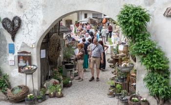 Mercatino di artigianato e prelibatezze nella Tenuta Gaudenz di Parcines con borse di tube di trattore, conserve di frutta e verdura. "Gselchts" (affumicato) e pane fatto in casa, gioielli, piante e molt'altro in un ambiente affascinante.