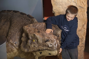 Der Saurierpfad oberhalb des Besucherzentrums GEOPARC Bletterbach in Aldein führt auf eine Reise in das Perm vor 260 Millionen Jahren, in dem die Gesteine und Fossilien des Bletterbachs und der Dolomiten entstanden sind.