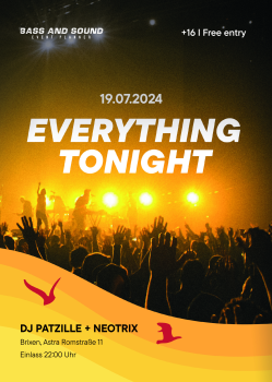 Am 19. Juli 2024 findet unsere erste Veranstaltung im Astra Brixen statt. Tanzen und Feiern bis spät in die Nacht. Für die passende Musik sorgt DJ Patzille und Neotrix von Club Hits bis Techno ist alles dabei.