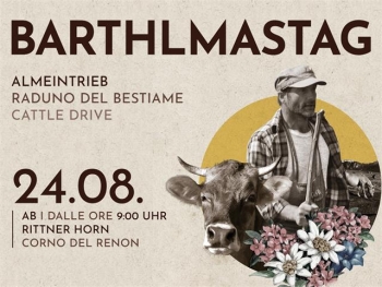 Il Barthlmastag è una festa d’alpeggio di lunga tradizione. Si svolge ogni anno il 24 agosto e prende il nome dal patrono dei pastori, San Bartolomeo. In questo giorno i contadini si riunivano e si riuniscono ancora oggi sull’Alpe del Renon per il raggruppamento del bestiame e il successivo mercato. Il bestiame dei contadini, che ha trascorso l’estate in alpeggio, viene radunato presso la malga Saltner e condotto a mezzogiorno con “Goasslschnöllen” (colpi di frusta), richiami dei Saltner (pastori), nitriti e ruggiti. Il luogo di ritrovo è un prato recintato,