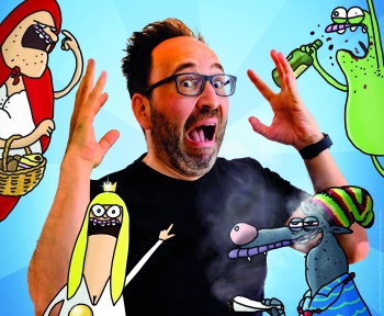 Masztalerz liest nicht nur einfach seine Cartoons und Comics live vor, er spricht mit seinen animierten Figuren oder lässt sich von ihnen anpöbeln und singt sich durch bekannte Lieder, die Sie danach in einem völlig neuen Licht sehen werden.