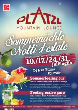 Le notti d'estate al Platzl Mountain Lounge. Ogni giovedì dalle ore 17 fino alle 1 e tutto fino al 04.09.14.