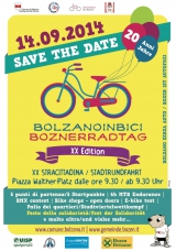 Bolzano senza auto. XX Stracittadina: 5 punti di partenza, 6 h MTB Endurance, BMX contest, Bike shops - open doors, E-bike test. Palio dei quartieri. Festa della solidarietà e molto altro.