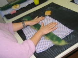 Die Matscher Bäuerinnen erklären uns, wie die Schafwolle verarbeitet wird. Anschließend dürfen wir selbst Hand anlegen und einen Filzhut unter Anleitung der Expertinnen selbst herstellen.