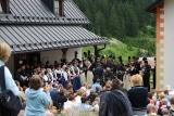 ore 9:45: Ingresso degli abitanti, degli ospiti d’onore, la delegazione di Sover in Val di Cembra accompagnati dalla banda musicale dei minatori, del coro di Ridanna e dell' associazione dei minatori di Ridanna Monteneve.