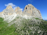 Prendiamo il pullman fino al Passo Sella. Il sentiero sale quindi ripido verso la Forcella del Sassolungo (questi 500 metri di dislivello possono essere percorsi eventualmente anche in ovovia). Dopo aver passato il Rifugio Toni Demetz, scendiamo lungo l’altro versante, altrettanto ripido, fino al Rifugio Vicenza. Dopo la sosta per il pranzo torniamo, in continuo saliscendi, alla stazione a monte dell’ovovia Ciampinoi.
