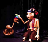 Curiose performances con marionette a filo animate a vista. La musica guiderà insoliti personaggi di legno in situazioni originali: Calipso la maga dalle molte braccia, lo Gnomo dormiglione, Adelante il pulcino, il fantasma volante, Uga equilibrista circense e il ballerino Cra, danzatore errante, abile musicista e saltatore d’eccezione. Tra stupore e sorrisi, prendono vita le vicende dei sei personaggi, brevi storie senza parole, dove musica e movimento trasportano in un mondo magico e poetico, dove il finale resta sospeso, così come sono sospesi ai fili i personaggi che ne fanno parte.