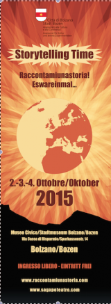 “Gli dei ed il mondo” sarà il tema a cui si dedicherà la quarta edizione bolzanina del Festival di Storytelling, che per tre giorni animerà le sale del Museo Civico di Bolzano. “Storytelling Time” conferma la direzione artistica della “Compagnia di Storytelling Raccontamiunastoria” - Paola Balbi e Davide Bardi - e si realizza in collaborazione con l'Associazione “Sagapò Teatro” di Bolzano.Anche quest'anno grazie alla fiducia ed all'iniziativa dell'Assessorato alla Cultura e alla Convivenza della città di Bolzano, nonché al sostegno dell'Ufficio Cultura della Provincia di Bolzano e della Fondazione Cassa di Risparmio, cantastorie internazionali e della nostra terra si riuniranno per dare voce a fiumi di racconti mai sentiti.