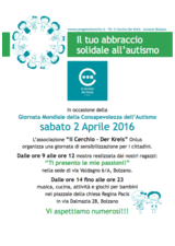 In occasione della Giornata Mondiale della Consapevolezza dell’Autismo l’associazione “Il Cerchio - Der Kreis” Onlus organizza una giornata di sensibilizzazione per i cittadini.