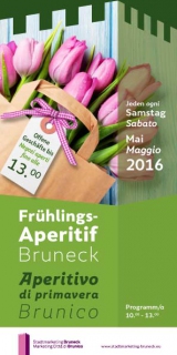 Nel mese di maggio 2016, ogni Sabato i negozi del centro resteranno aperti fino alle ore 13:00. Ogni sabato tratterà un tema particolare e alcuni bar e ristoranti di Brunico, vi serviranno speciali stuzzichini e aperitivi primaverili. Gli esercizi coinvolti sono: