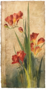 La mostra, intitolata“Flores”, presenta una serie di 28 opere di piccolo formato, tutte dedicate al tema floreale: rose, iris, fresie e gelsomini.