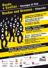 “Esodo e confini - Cinema, musica e conversazioni”è la manifestazione che si terrà dal 15 al 23 di maggio tra Bolzano, Merano e Bressanone. Sei giornate di appuntamenti culturali per dare spazio alle riflessioni sul tema dell’immigrazione, partendo da spunti offerti dalla più recente produzione cinematografica e letteraria. Documentari, saggi e performance musicali, creeranno le giuste occasioni di incontro per analizzare queste tematiche ormai attualissime.