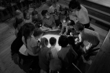 giocando, cantando, cenando alla grande tavolata, leggono nel grande