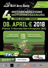 Alla sua quarta edizione, per la terza volta in Piazza Tribunale a Bolzano, i Biker Alto Adige organizzano la Motobenedizione: 8 aprile 2018 dalle 9:00.