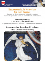 Ad inizio novembre, i cristiani commemorano i santi e i defunti:giornate che inducono ad una riflessione importante cioè la speranza nella resurrezione: (resurrecturis). Il concerto che viene proposto al cimitero di Oltrisarco vuole ricordare nel 5° anniversario della sua morte (1944-2013), uno straordinario compositore londinese di musica corale: Sir John Taverner.