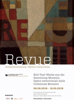 Parallelamente alla presentazione nella mostra REVUE a Parcines, anche Museion ospiterà, nell’ambito della mostra “Tutto”, in collaborazione con Sammlung Goetz, una sezione dedicata ad opere sul rapporto tra testo e immagine, quindi alla poesia visiva, provenienti dalla Collezione Museion /Archivio di Nuova Scrittura (dal 13/10/2018 al 24/03/2019). Si conferma così l’attenzione di Museion per un tema della storia dell’arte che fa parte della sua identità fin dalle fasi iniziali della sua storia e che troverà un riflesso anche nella programmazione espositiva del 2019.