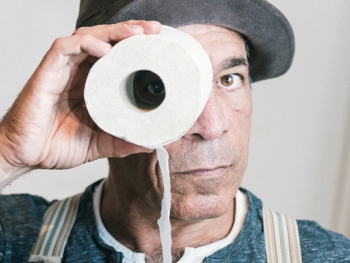 Attaccapanni, carta igienica, piante di basilico: tutto è possibile nella terapia della risata di Peter Shub.