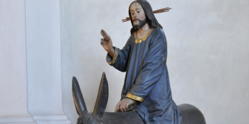 La scultura tardogotica rappresenta Cristo benedicente che a cavallo di un’asina entra trionfalmente a Gerusalemme dove viene accolto dalla folla festante (Matteo 21,1–9). Risale al XVI secolo e proviene dalla parrocchia Tannheim (Tirolo del nord). La scultura è eposta nella chiesa di corte.