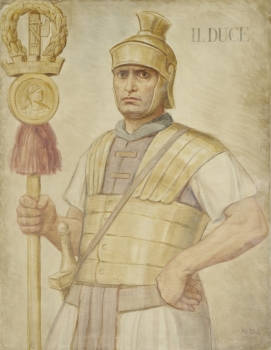 La mostra tematica tratterà delle strategie utilizzate dai regimi autoritari europei in ambito figurativo nel periodo compreso tra le due guerre. Con la fine della Prima guerra mondiale, la “catastrofe primigenia del XX secolo”, l’Europa non ritrovò più pace. Tendenze nazionalistiche surriscaldavano il clima. Catastrofi finanziarie favorirono la concentrazione di poteri autoritari nelle mani degli stati. L’Alto Adige si venne a trovare sulla linea di confine nell’incontro-scontro tra il sistema fascista italiano e quello nazionalsocialista tedesco. Sulla base di testi selezionati e significative iconografie si intende presentare lo sfondo politico e spiegare il concetto figurativo che all’epoca, non privo di aggressività, veniva divulgato a gran voce.