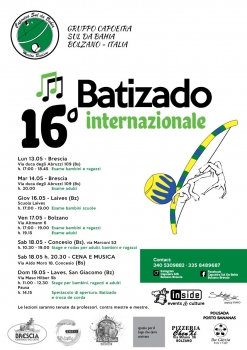 Stage per bambini, ragazzi e adulti. Alle 14.15 spettacolo di apertura, Batizado e troca de corda.