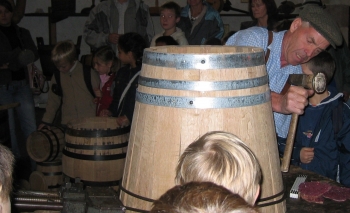 Conosciamo l’antico mondo e gli oggetti dei bottai, osserviamo come si costruisce una botte e facciamo un portachiavi con lo stemma del bottaio.