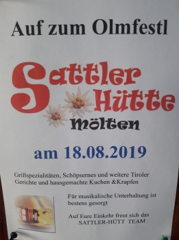 La malga Sattler Hütte invita tutti alla festa estiva tradizionale. Ci sono specialità alla griglia, "Schöpsernes" e altri piatti tirolesi, ma anche torte e "Krapfen" fatte in casa.