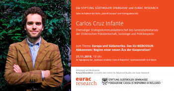 Eurac Research e Fondazione Cassa di Risparmio di Bolzano invitano all’incontro con Carlos Cruz Infante, esperto di politica cileno