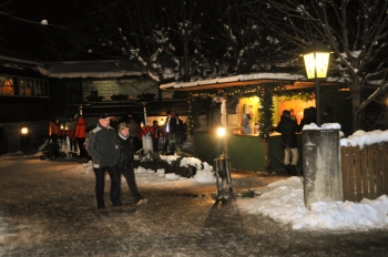 La Foresta Incantata - alle cascate di Riva a Cantuccio. Passeggiata romantica attraverso il verde scuro della foresta invernale. Mostra del presepi nel caseificio Goasroscht. Straordinario albero di Natale con 400 pezzi di decorazione in feltro. Delizie dalla griglia. Dietro l'abete rosso un cervo, accanto al pino un cerbiatto - intagliati in legno. Profumo di abete rosso, mescolato con l'aroma speziato delle pietanze nella piccola capanna. Musica tranquilla. Lontanamente il fruscìo della cascata ai piedi del volto di Cristo illuminato - nella roccia.