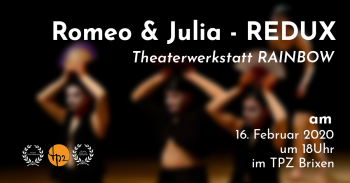 Senza tante parole, ma usando le espressioni del corpo e del viso, i sei attori e le attrici del Laboratorio teatrale RAINBOW del Centro pedagogico teatrale di Bressanone raccontano la storia di Romeo e Giulietta. È una strana versione della più famosa storia d'amore di tutti i tempi, grottesca e concentrata sull'essenziale, che è stata rappresentata con grande successo al festival del teatro amatoriale di Pohang/Corea del Sud.