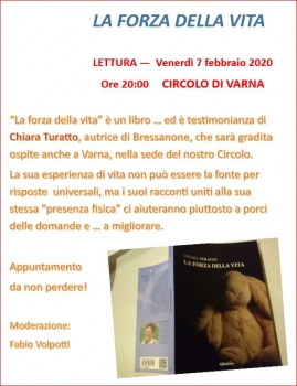 “La forza della vita” è un libro ma è testimonianza di Chiara Turatto, autrice di Bressanone, che sarà gradita ospite anche presso il Circolo culturale di Varna.
