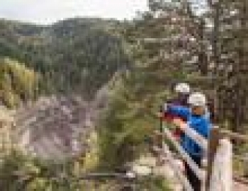 un avvincente tour virtuale con suggestive immagini aeree del grand canyon dell'Alto Adige, il GEOPARC Bletterbach, luogo di ritrovamento di molti fossili e orme di sauri e parte delle Dolomiti Patrimonio Mondiale Unesco.