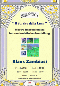Mostra Impressionista di Pittura di Klaus Zambiasi, che espone parte delle sue opere frutto di 25 anni di passione per l´Arte. Presenta anche il suo romanzo ambientato in Alto Adige tradotto e pubblicato in inglese e slovacco.