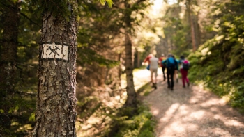Il Sentiero dei Minatori può venire percorso anche senza guida seguendo il sentiero 11A o indicato con la punta e la mazzetta su sfondo bianco.