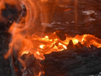 Il carbone diventa rosso come il fuoco e il rame si fonde.